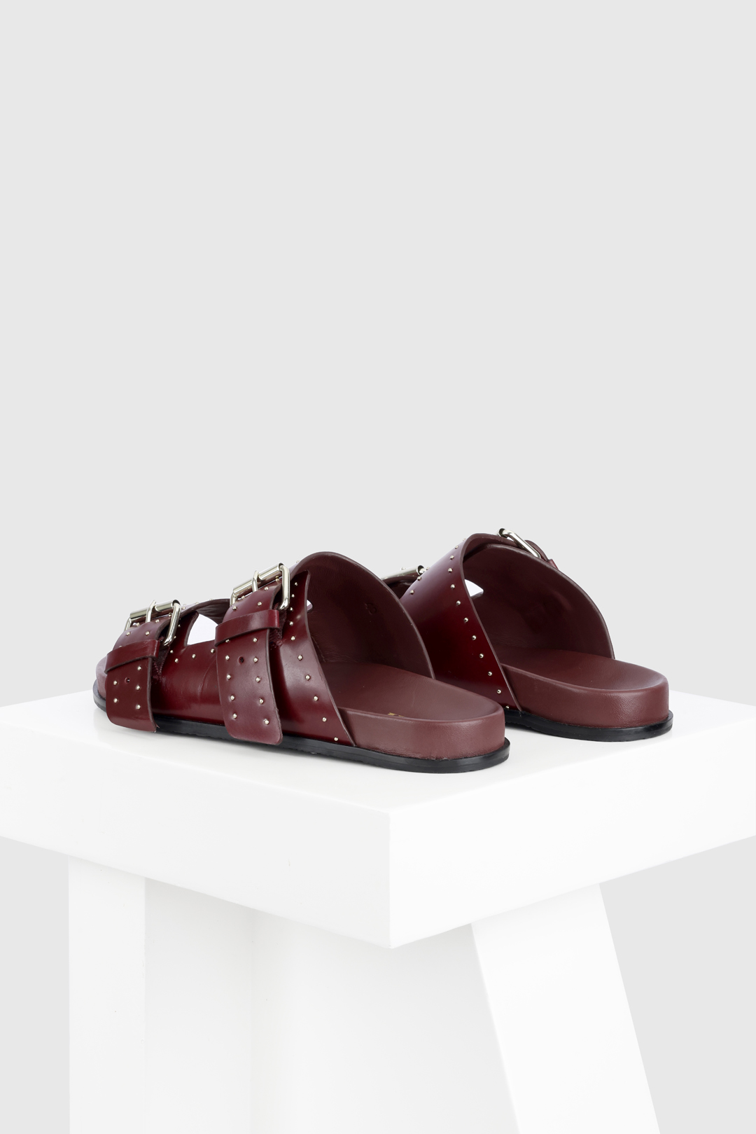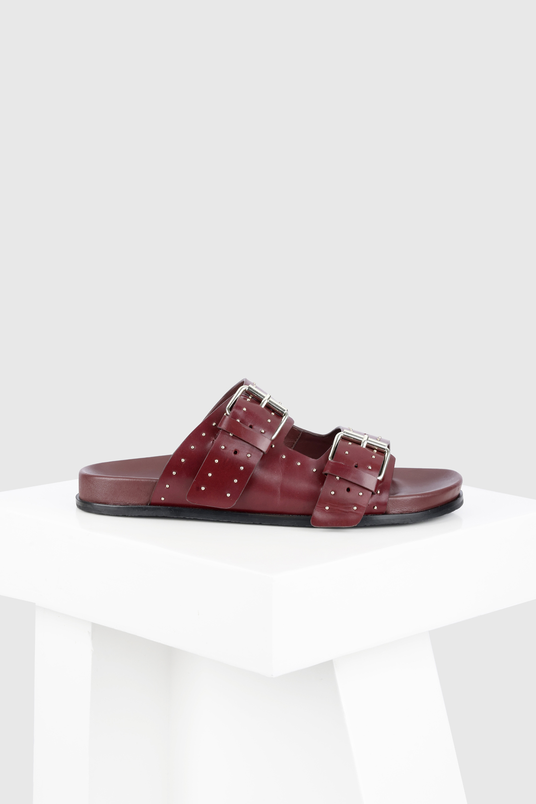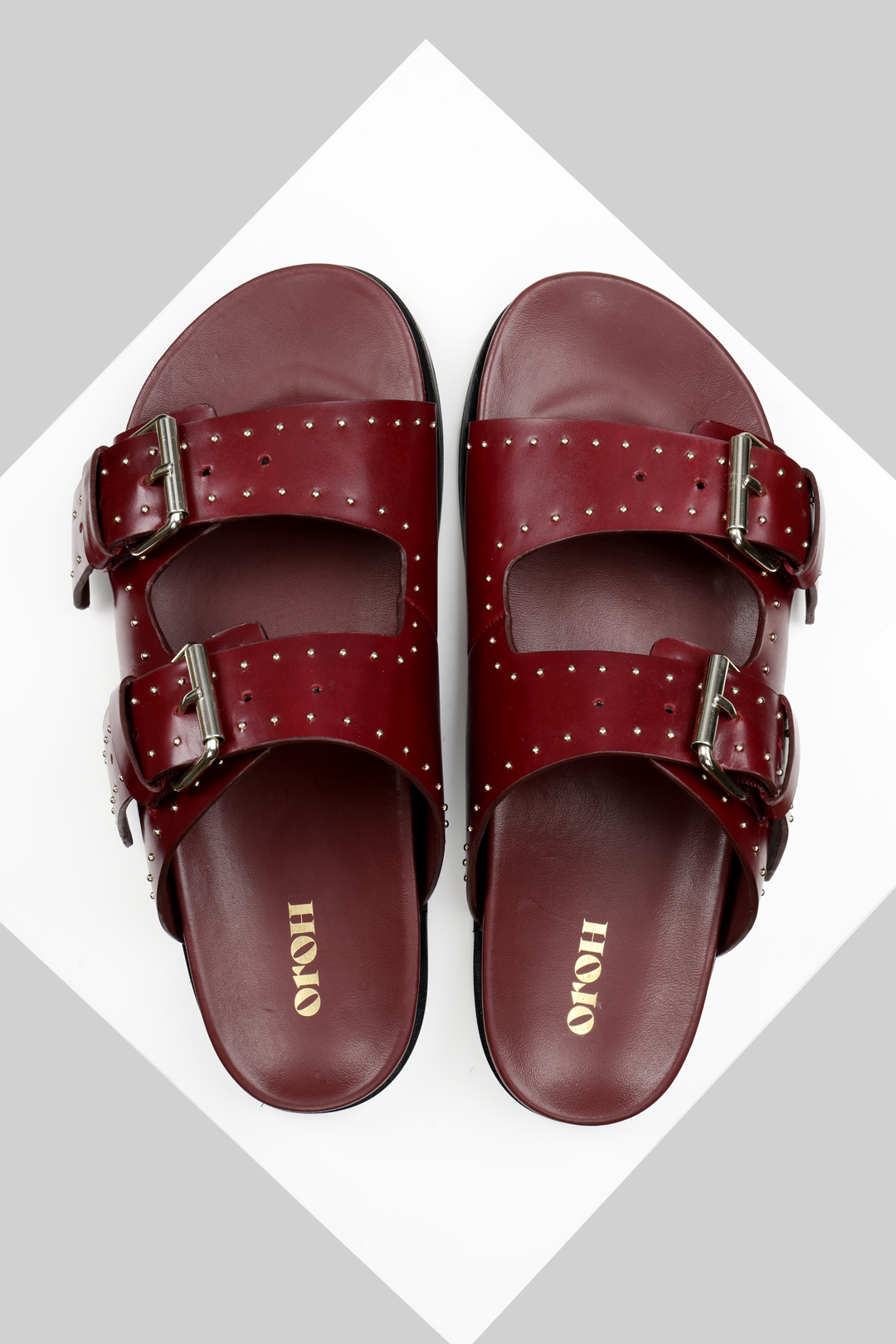 Meilila is a flat sandal with a studded buckle upper. The dual-buckle straps and the classic colours combine with the comfortable leather-covered footbed to make an everyday essential for your wardrobe. All our sandals are designed in Europe and manufactured using premium leather.